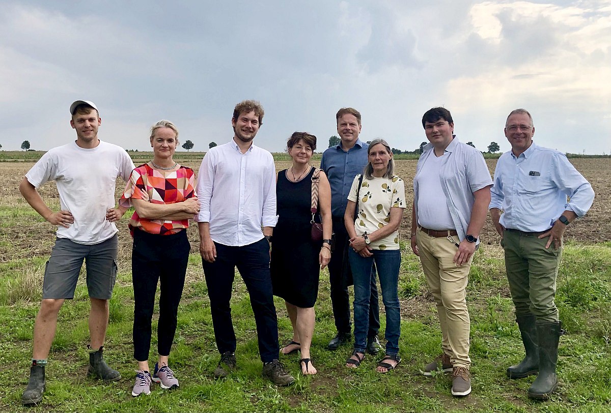Ein besonderer Schwerpunkt lag hierbei auf dem Projekt „Agroforst“, das in diesem Jahr noch einmal um 30 Hektar erweitert worden ist und an diesem Tag von Carlo Marzini präsentiert wurde. Von Cramon und Nienaß zeigten sich beeindruckt von dem Vorhaben, das nachhaltigen Schutz vor Erosion bietet, Wasser besser in der Fläche hält und langfristig für höhere Erträge sorgen soll. Das Ganze im Rahmen der Biolandwirtschaft...