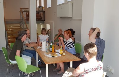 Eine erste interne Feier fand am Sonntag, dem 14. Juli statt. Ein Mitgliederfrühstück war Anlass, Jubilare zu ehren, die zwischen 10 und 40 Jahren Mitgliedschaft bei den GRÜNEN vorweisen können. Mitglieder aus unterschiedlichen Dörfern des Landkreises nutzten die Gelegenheit, eine längere Fahrradtour zu machen. Auch neue Mitglieder hatten die Möglichkeit , die lokalen GRÜNEN kennenzulernen und sich auszutauschen. Die Stelle, kaum eingerichtet, zieht schon Besucher an. „Wertschätzung und Begegnung sind für uns zwei tragende Begriffe, die wir heute mit Leben gefüllt haben“, so Ghalia El Boustami, Co-Sprecherin des Vorstandes des Kreisverbandes, die sich auch über das Kommen einiger Nachbarn freute. In Vorbereitung ist nun die offizielle Eröffnung, die am 8. September um 11 Uhr stattfinden wird.