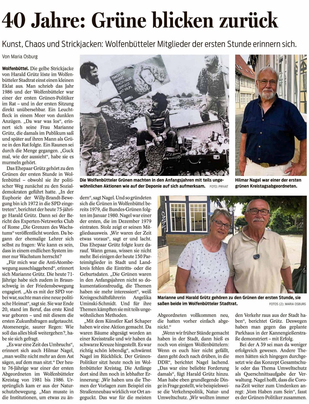 Der Kreisverband Wolfenbüttel der GRÜNEN wird in diesem Jahr 40. Vorgesehen war ein rauschendes Fest, angemessen feierlich und doch etwas wild, wie es sich gehört, wenn man ein etwas gesetzteres Alter erreicht, aber doch noch nicht zu saturiert ist. Sollte aus bekannten Gründen nicht sein! Also mussten sich die GRÜNEN auf eine Ausstellung beschränken, draußen und mit Corona-Abstand.