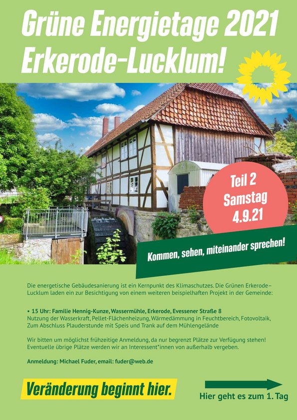 2. Tag am 4.9.21 um 15 Uhr bei Familie Hennig-Kunze, Wassermühle, Erkerode, Evessener Straße 8